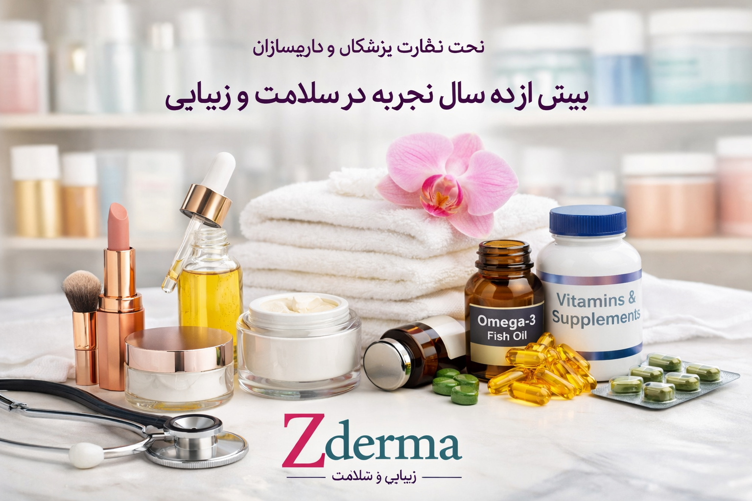 فروشگاه Zderma بیش از ده سال است که با هدف ارتقای سلامت و زیبایی شما فعالیت میکند. ما مجموعهای از لوازم آرایشی و بهداشتی و مکملهای غذایی را ارائه میکنیم که زیر نظر پزشکان و داروسازان مجرب انتخاب و تأیید شدهاند. تخصص و تجربه تیم ما تضمین میکند که هر محصولی که در Zderma عرضه میشود، از نظر کیفیت، اصالت و اثرگذاری در بالاترین سطح قرار دارد.
