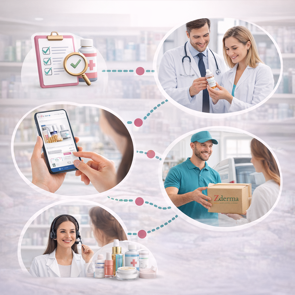 در Zderma، هر چیزی که انجام میدهیم با هدف سلامت، زیبایی و رضایت شماست. ما فرآیند کار خود را بر اساس استانداردهای علمی و تجربه بیش از ده سال تیم پزشکان و داروسازان مجرب طراحی کردهایم تا اطمینان حاصل شود هر محصولی که به دست شما میرسد، از نظر کیفیت، اثرگذاری و اصالت بینقص باشد.ابتدا هر محصول به دقت بررسی و تأیید میشود. ما با ارزیابی ترکیبات، استانداردهای تولید و تأثیرات سلامتی، فقط بهترین محصولات را برای فروشگاه خود انتخاب میکنیم. سپس محصولات در بستهبندی امن و بهداشتی آماده ارسال میشوند تا تجربهای مطمئن و سریع برای مشتریان فراهم شود.